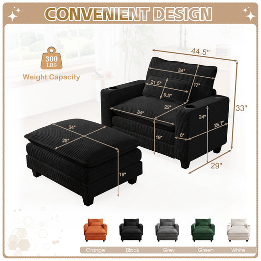Muumblus 45.5" Oversized Accent Chair with Ottoman, Indoor Chaise Lounge Chairs Comfy Corduroy Reading Armchair for Living Room, Black
