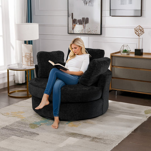 Muumblus 42"W Chenille Swivel Accent Barrel Chair, Modern Oversize Armchair Comfy Round Reading Chairs for Bedroom Living Room, Black